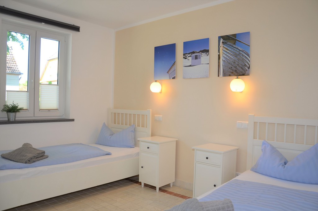 Eine moderne Ferienwohnung für 3-4 Personen mit Terrasse oder Balkon die/der nach Süden ausgerichtet ist. Das Wohn-/Esszimmer ist mit einer offenen Küche ausgestattet. Weiterhin befindet sich in der Wohnung ein separates Schlafzimmer mit Doppelbett und ein zweites Schlafzimmer mit zwei Einzelbetten sowie ein komfortables Badezimmer mit Dusche/WC.